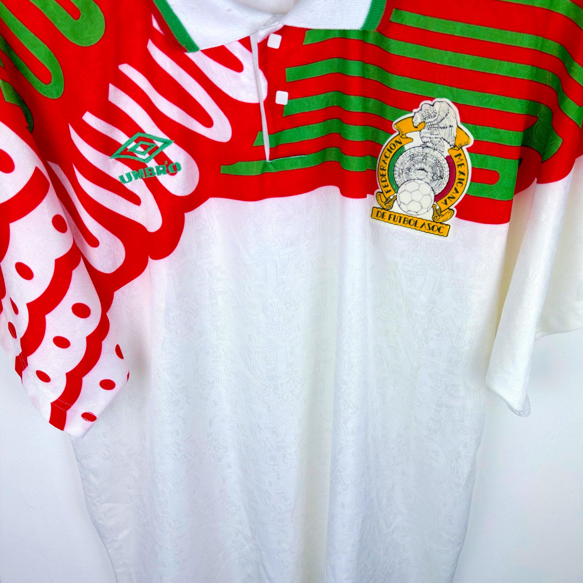 Ultra-rare away shirt worn during the 1994 World Cup in which El Tricolor topped a group where all four teams finished on the same number of points.